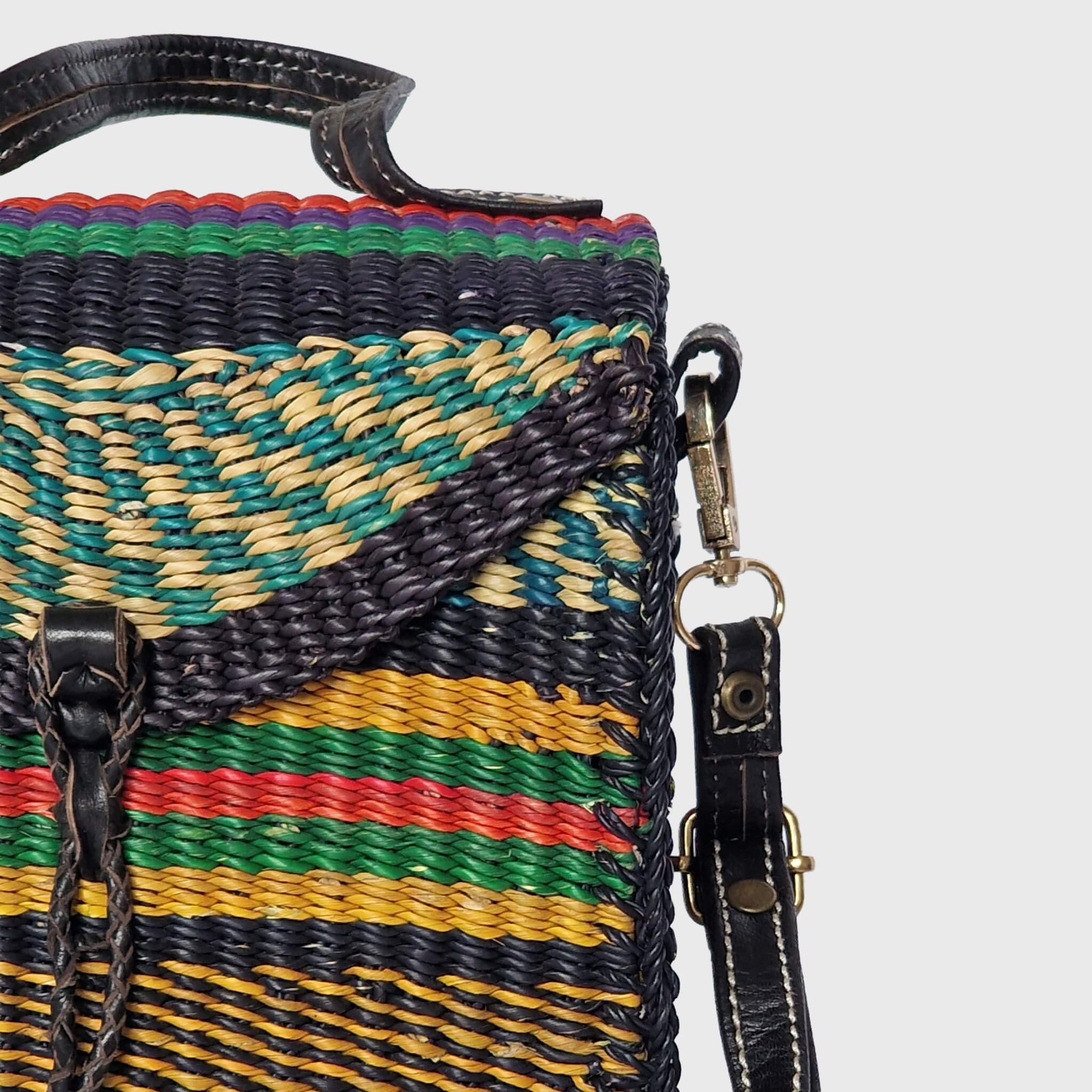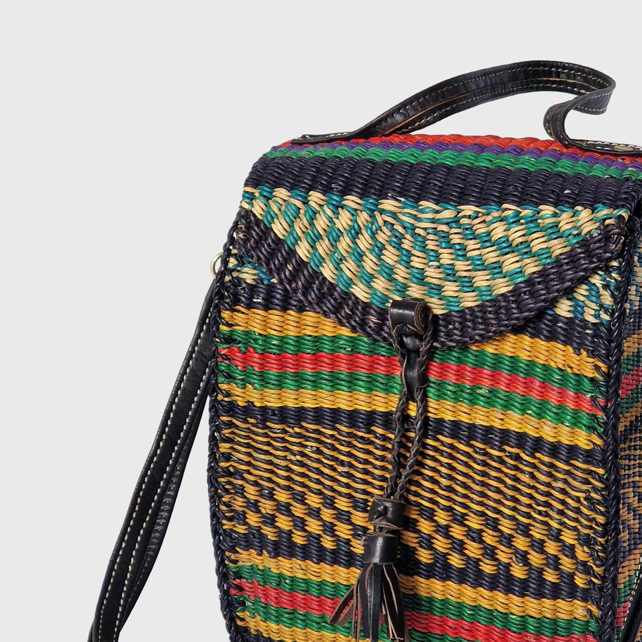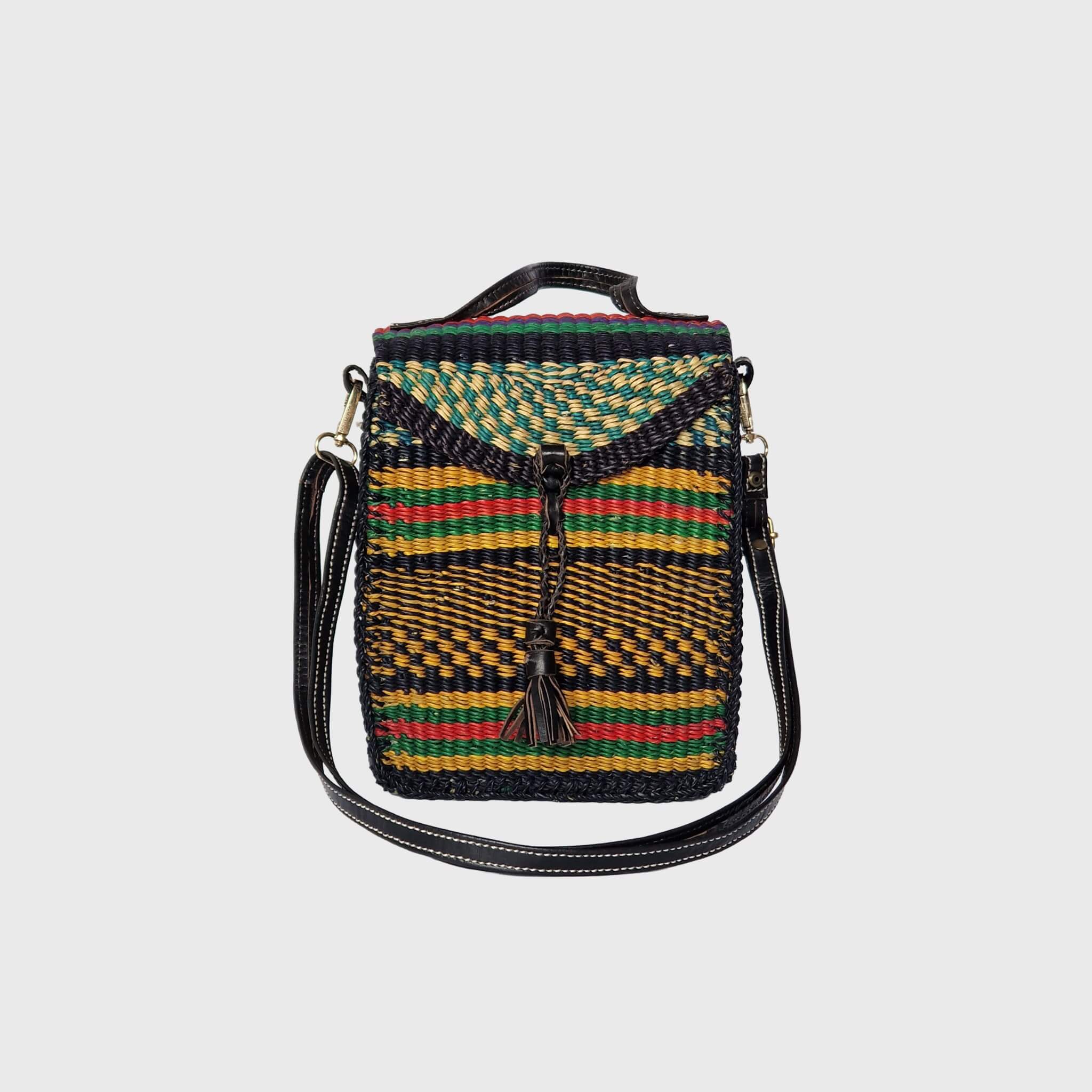 Each Boxed Bag is a unique piece of art, showcasing the precise weaving patterns and the vibrant colours (or natural tones, like the one pictured) that reflect the creativity of our artisans. Made from sustainably sourced elephant grass, these bags are not only strong and durable but also eco-friendly. The distinctive structured shape, practical top handle, secure flap closure with its simple loop, and versatile long straps offer a perfect blend of modern functionality and traditional Ghanaian craftsmanship.