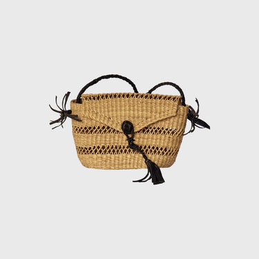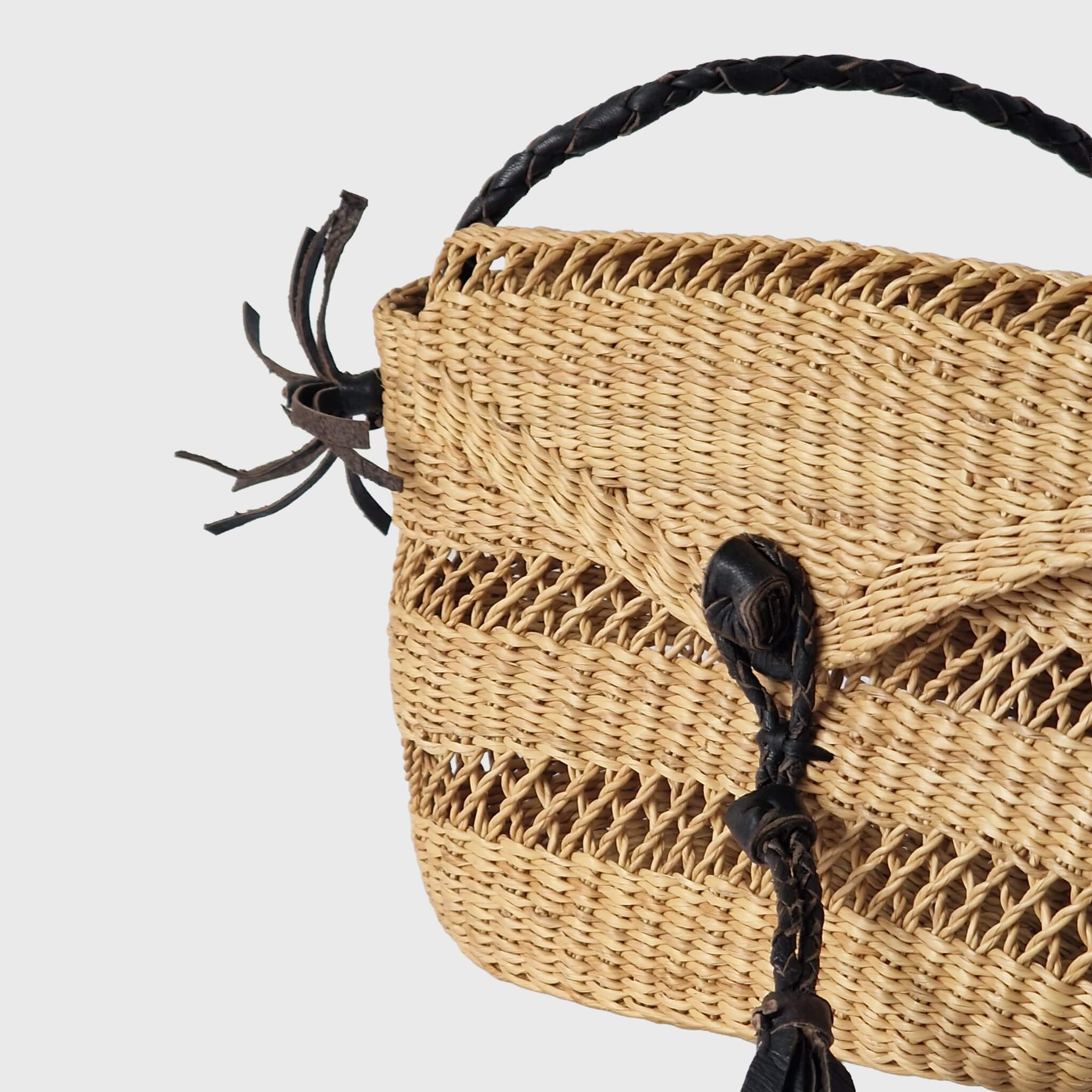 Each Small Handbag is a unique piece of art, showcasing the tight weaving patterns and the vibrant colours (or natural tones, like the one pictured) that reflect the creativity of our artisans. Made from sustainably sourced elephant grass, these bags are not only strong and durable but also eco-friendly. The distinctive flap closure with its simple loop, combined with the practical, long crossbody strap and charming tassel details, offers a perfect blend of modern convenience and traditional Ghanaian craftsmanship.