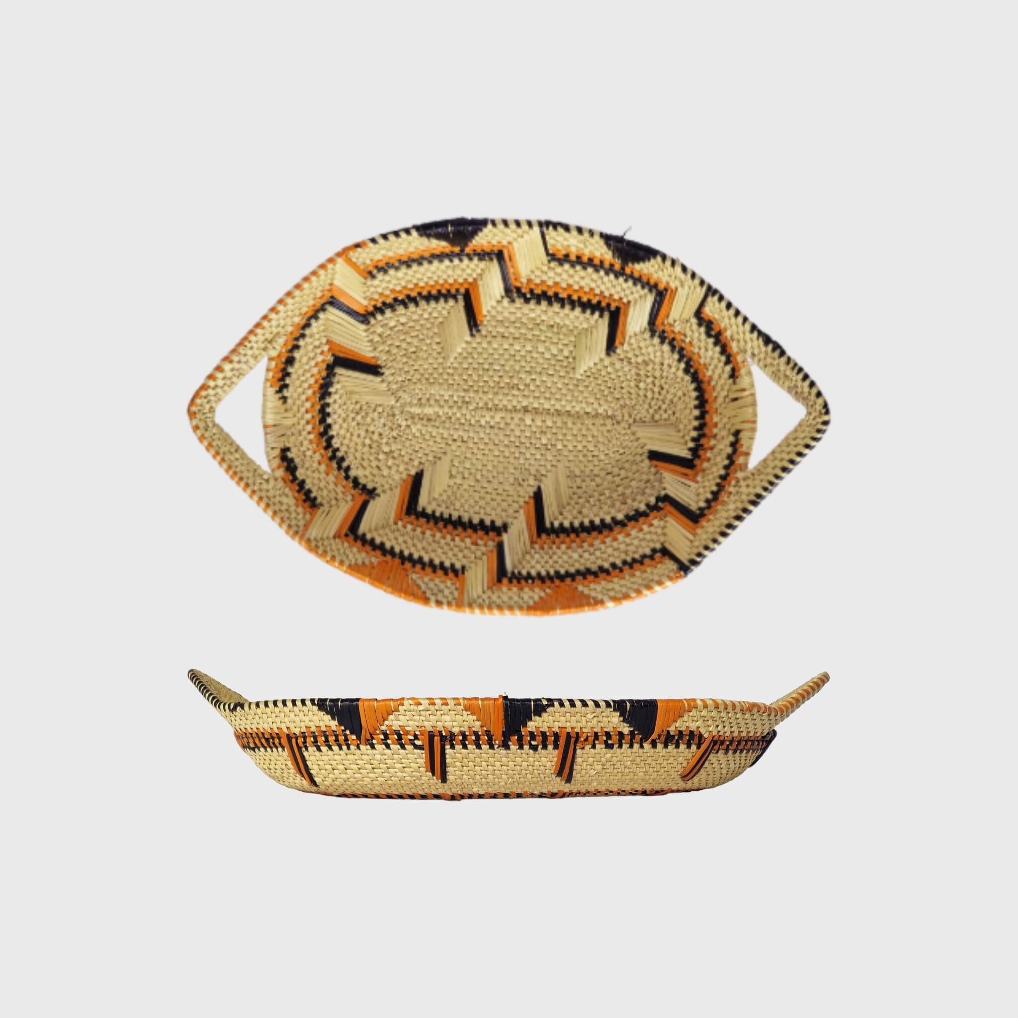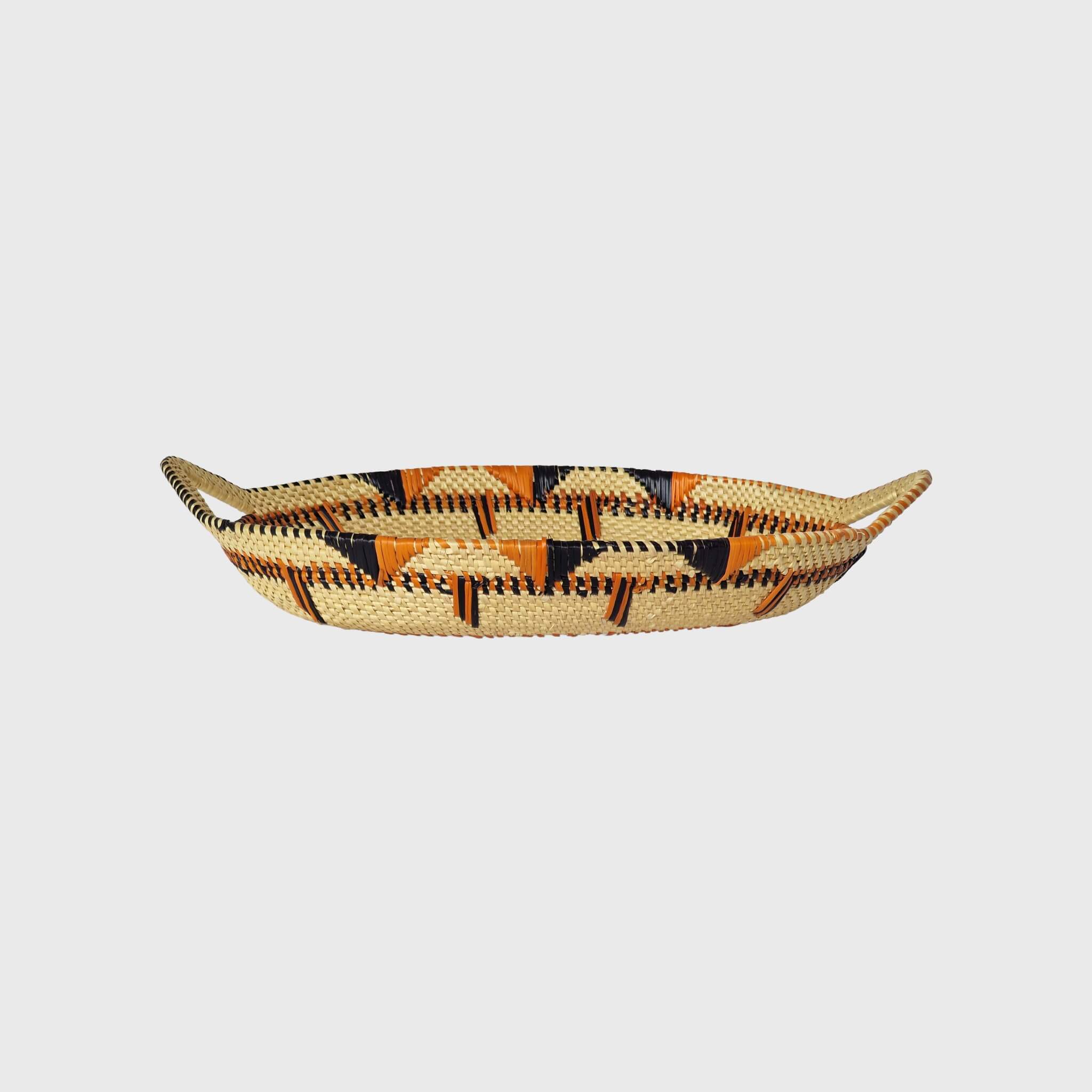 Elevate your home décor with our Oval Decorative Bowl, a beautifully handcrafted piece meticulously woven from durable elephant grass by talented women in Northern Ghana. With its graceful oval shape and integrated handles, this bowl offers both striking aesthetic appeal and versatile functionality, perfect for adding a touch of natural artistry to any surface in your home.