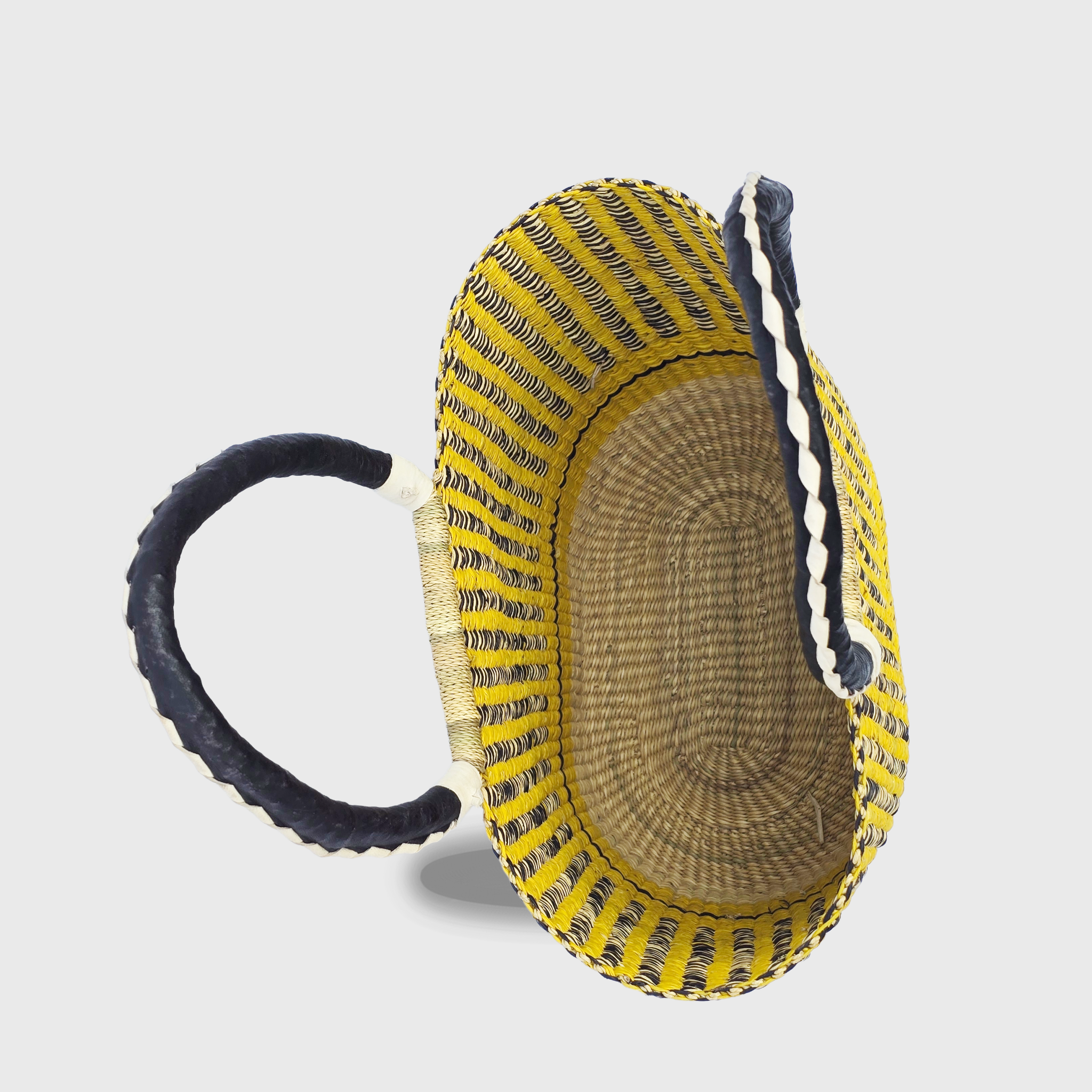 Each Open Weave Basket Bag is a unique piece of art, showcasing the intricate patterns and the natural beauty of the elephant grass, or vibrant colours when dyed. Made from sustainably sourced elephant grass, these bags are not only strong and durable but also eco-friendly. The distinctive open weave provides a modern twist on traditional Ghanaian craftsmanship.